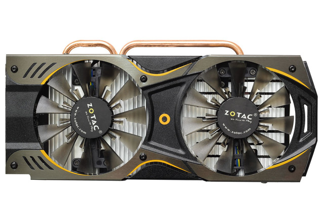 散热方面,索泰GTX950-2GD5 X-GAMING OC采用常规的双风扇设计,两个扇叶尺寸均为你9cm,保证了足够的风量,索泰独有的双刃刀锋风扇,子母扇叶搭配,带来双环散热风流,有效的避免了散热盲区,同时还可以减少扇叶上粉尘附着,有效降低噪音,在兼顾噪音的同时达到极佳的散热效果。