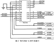 A/D转换器的选取主要考虑所采集的模拟信号的数量、精度及与DSP的速度匹配等,综合考虑后,选用TI公司生产的12位4通道高速AD-TLV2544TLV2544。
