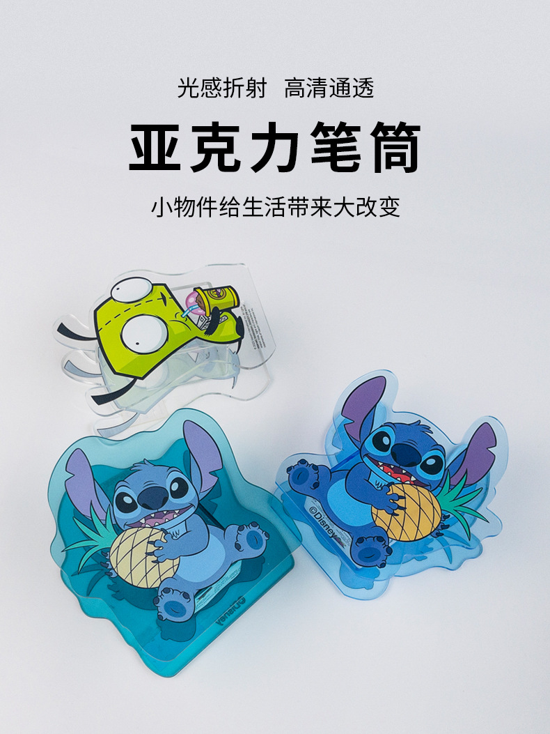 定制亚克力笔筒可爱简约办公台面整理盒彩色文具异形卡通收纳筒