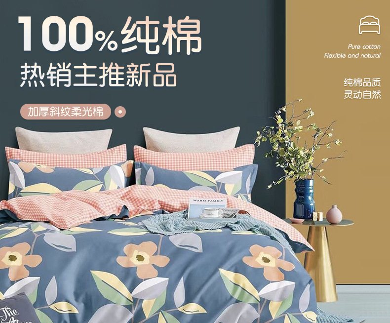 全棉面料床上用品 纯色水洗棉 易打理耐洗涤 抗皱免烫