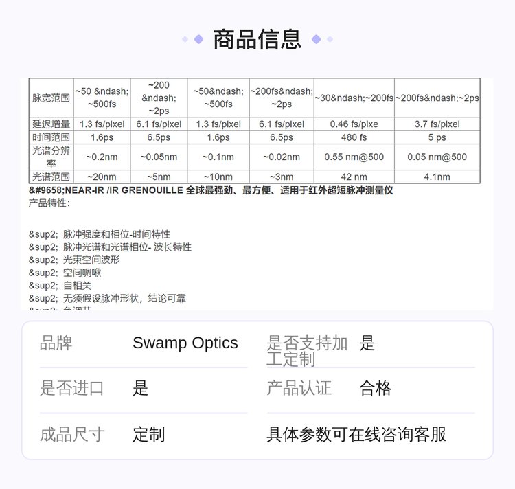 FROG超短脉冲测量仪+自相关仪+Swamp optics+8-20-USB