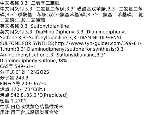 二氨二苯砜 599-61-1 用于合成聚砜类聚合物 二胺二苯磺酮