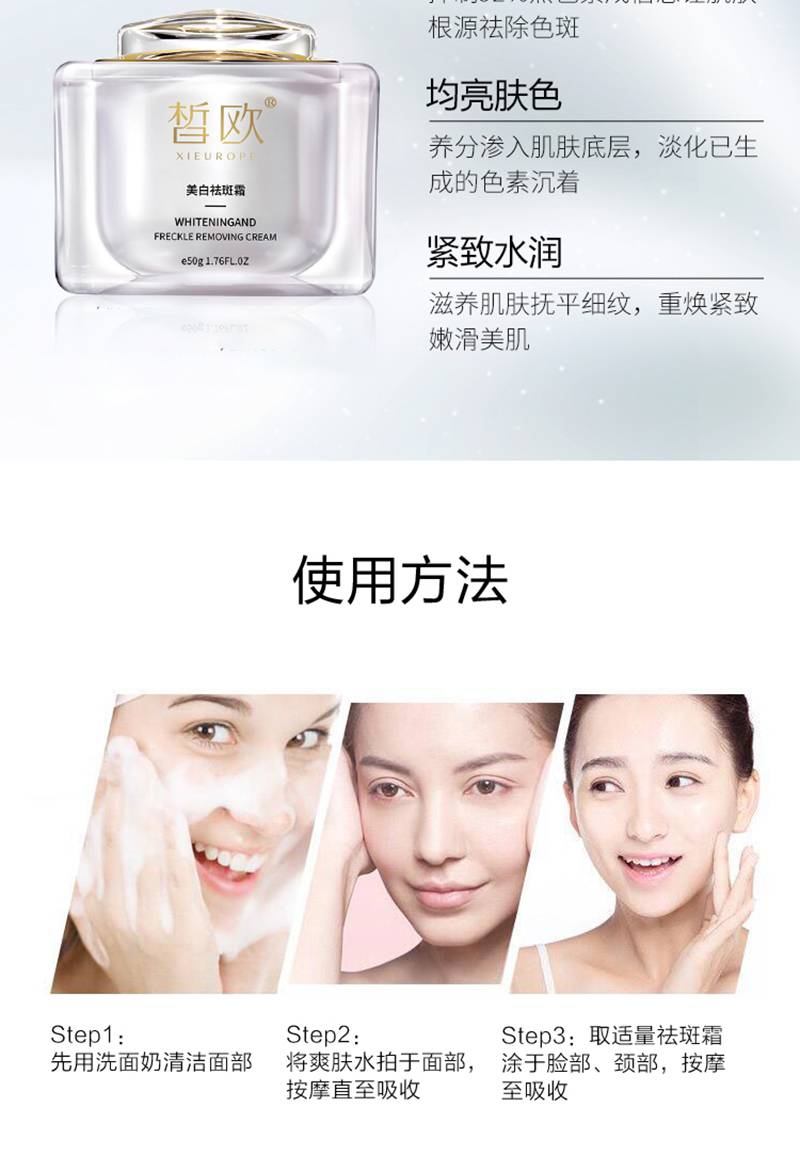 皙欧美白祛斑霜OEM定制淡化斑点改善暗沉提亮肤色保湿霜贴牌