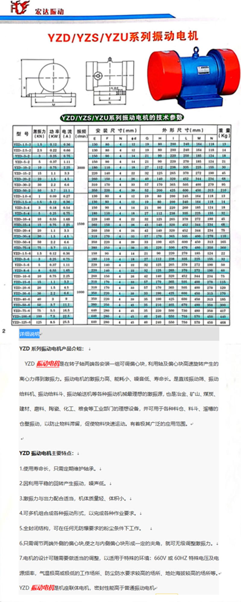 振动电机 YZD震动电机具有良好的绝缘性能 采用全封闭结构