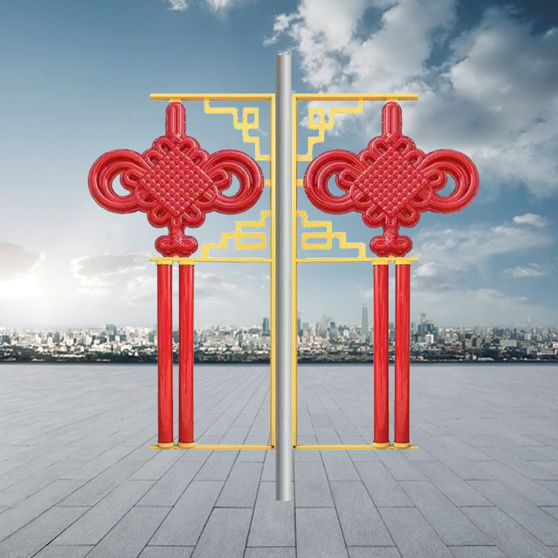春节路灯杆led太阳能中国结灯装饰灯电线杆广告牌道旗生产厂家