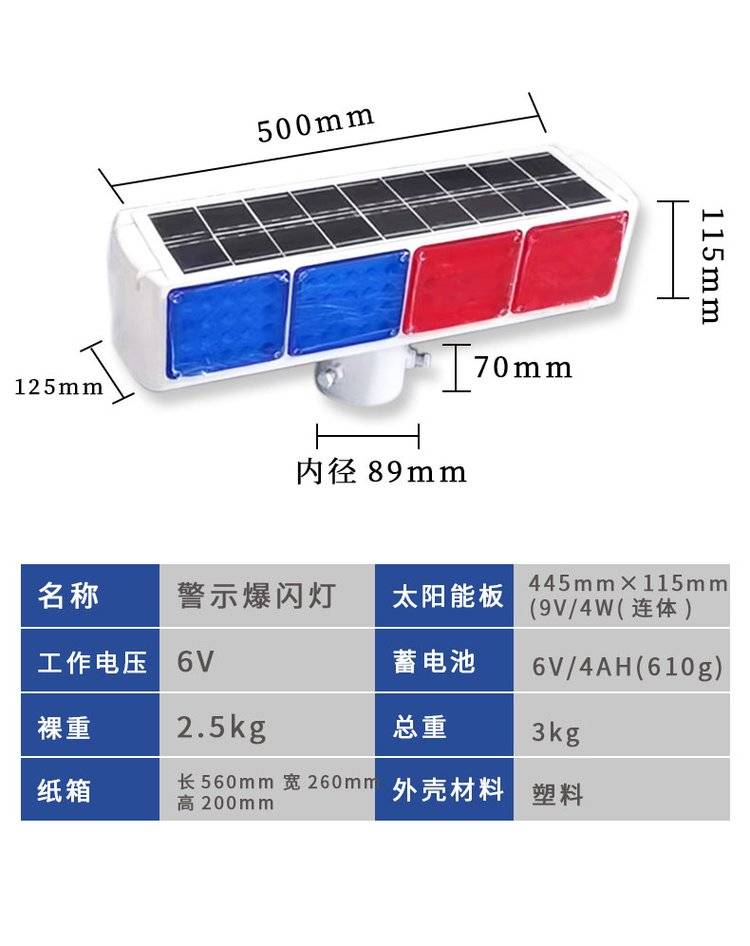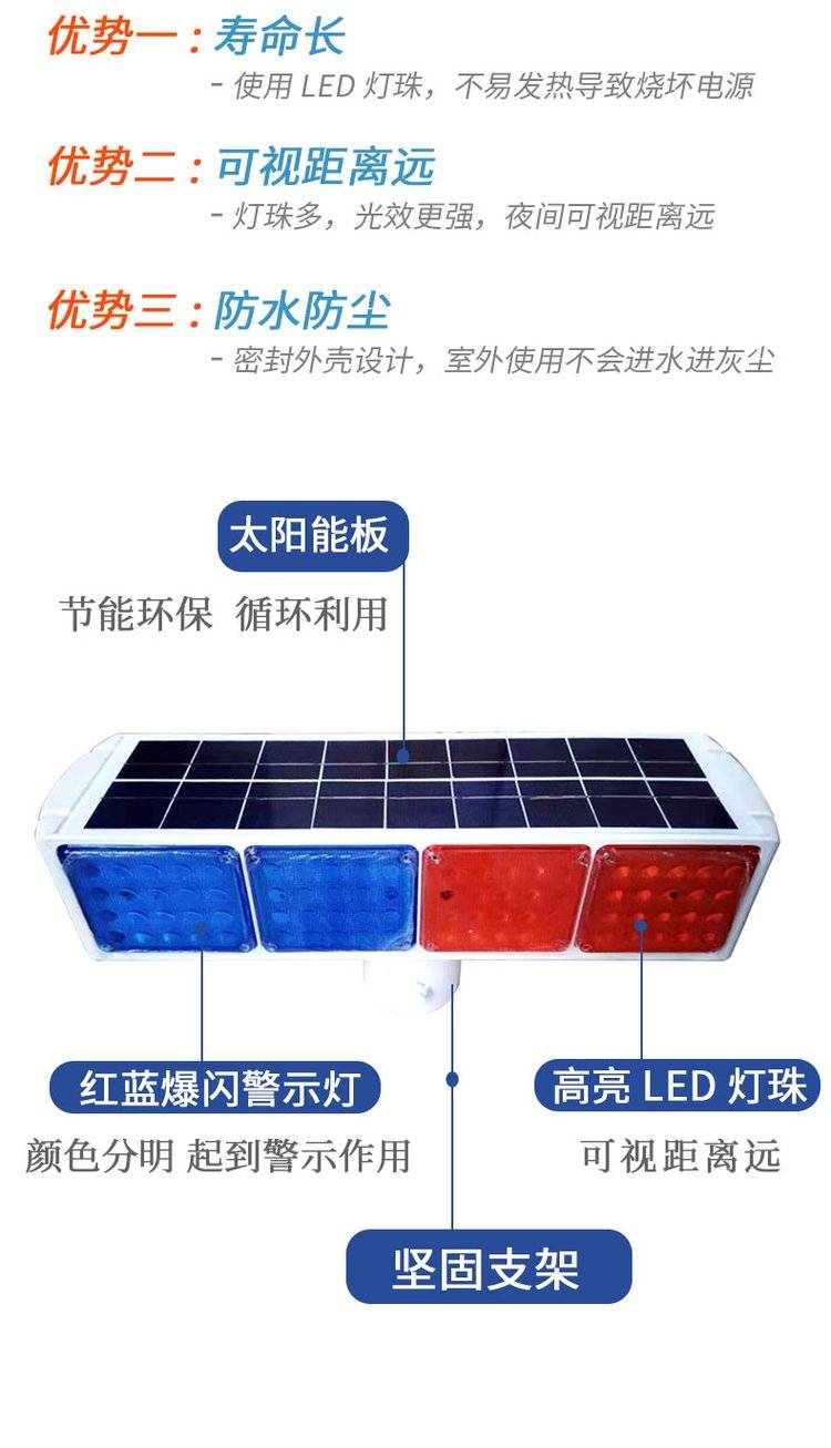 博宇品牌红蓝光太阳能爆闪灯定制款交通警示灯