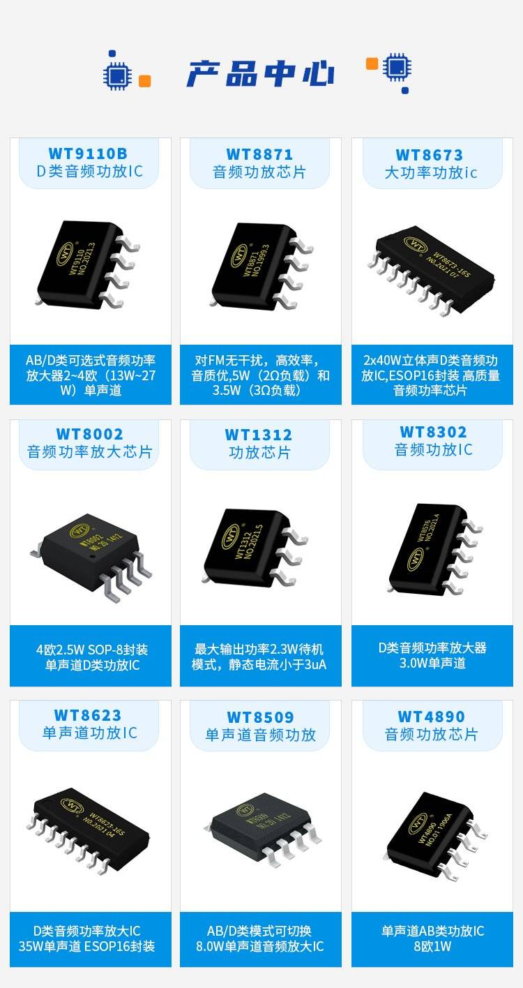唯创知音 SOP8 玩具功放芯片 AB类 4R2.5W 单身道功放ic WT8002