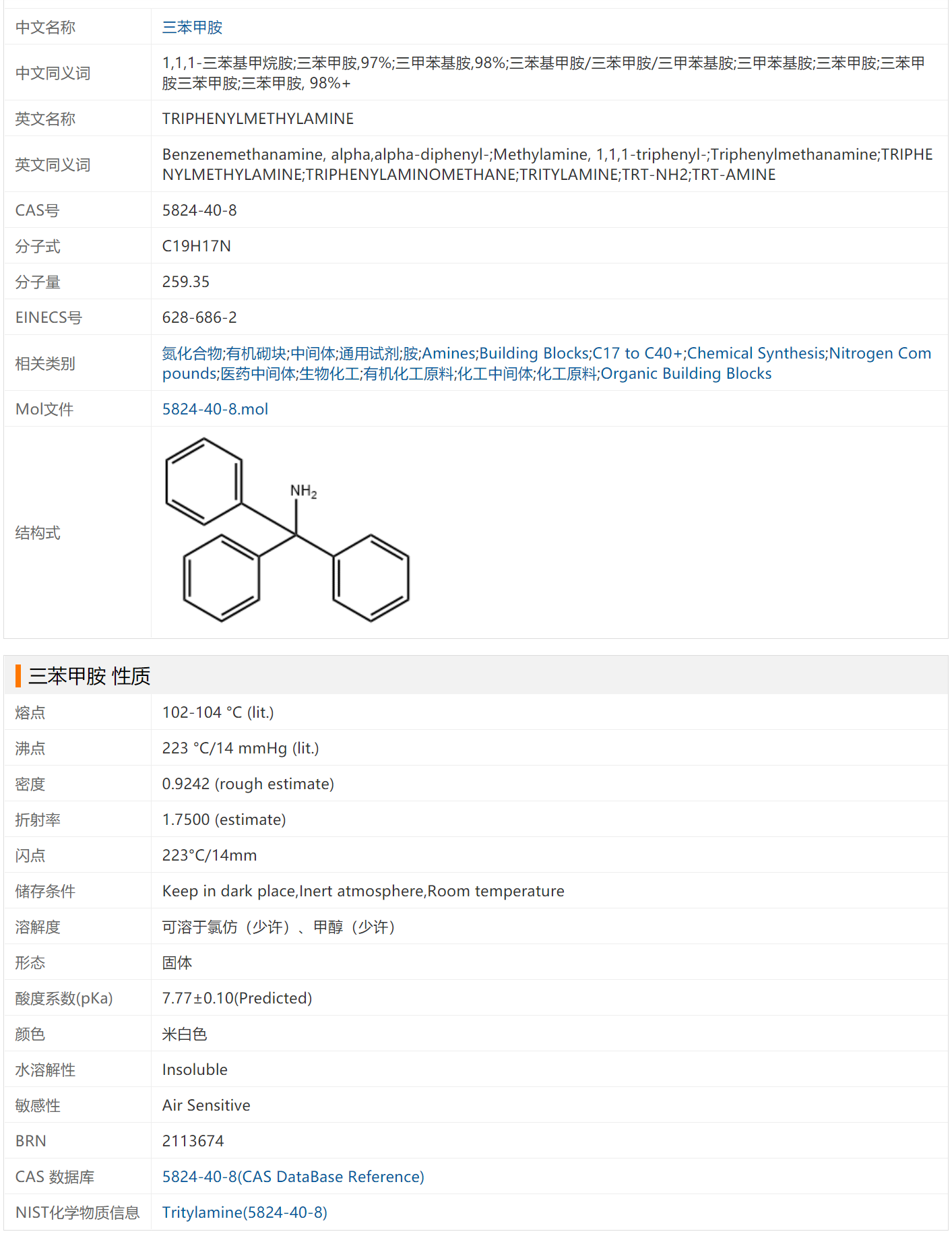 三苯甲胺 5824-40-8 含量98% 有机胺类化合物 苄胺类衍生物