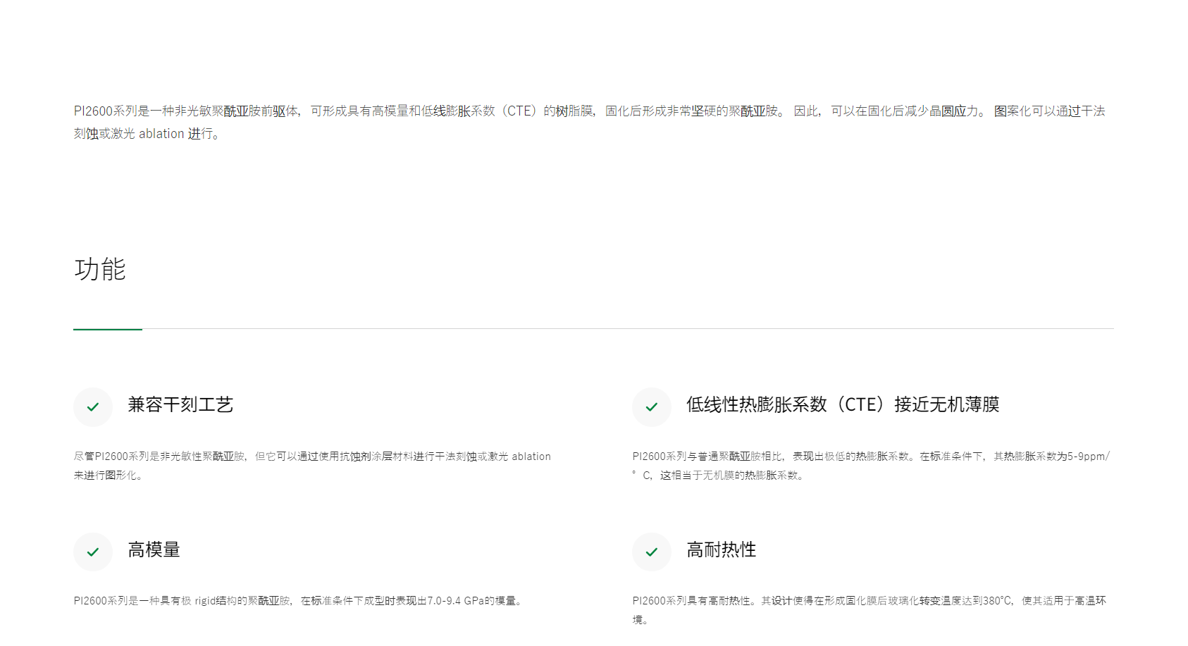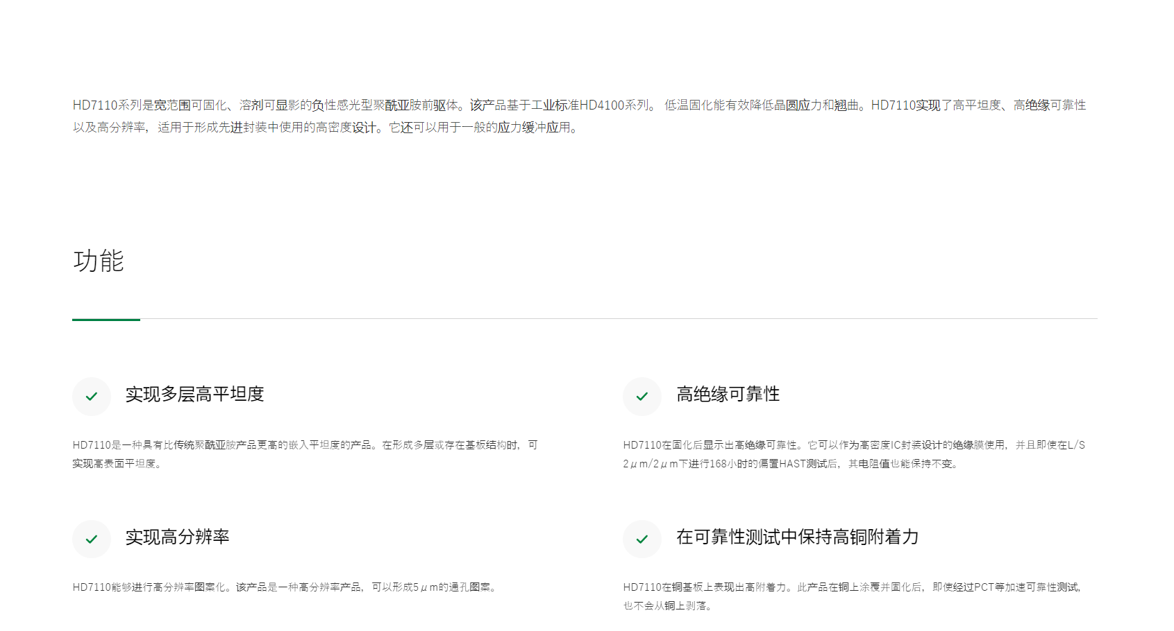 HD MicroSystems PI2525 低温固化非光致型聚酰亚胺