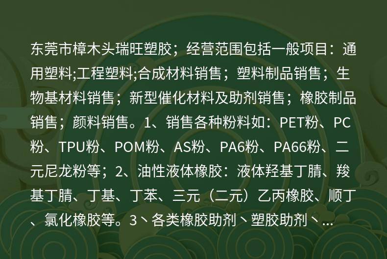 东莞市樟木头瑞旺塑胶原料经营部(个体工商户)