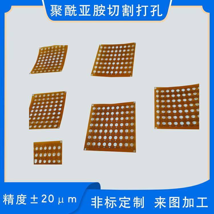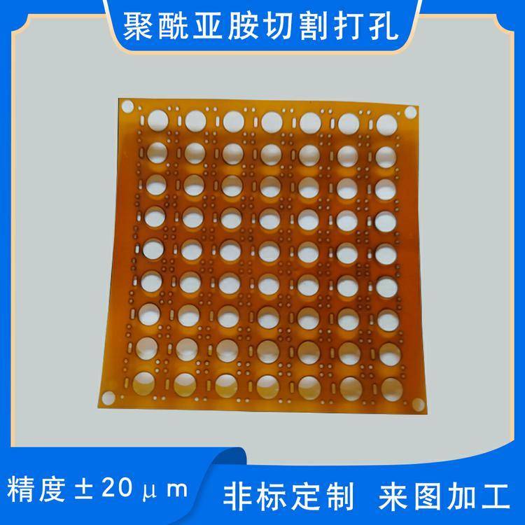 PI薄膜切割加工聚酰亚胺膜绝缘薄膜产品盲孔微小孔定做供应科研实验用