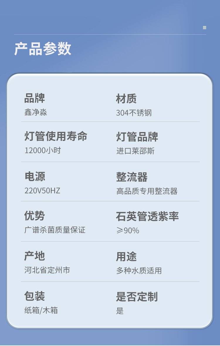 鑫净淼 中压紫外线消毒器 紫外线灯 UV杀菌器 支持定制