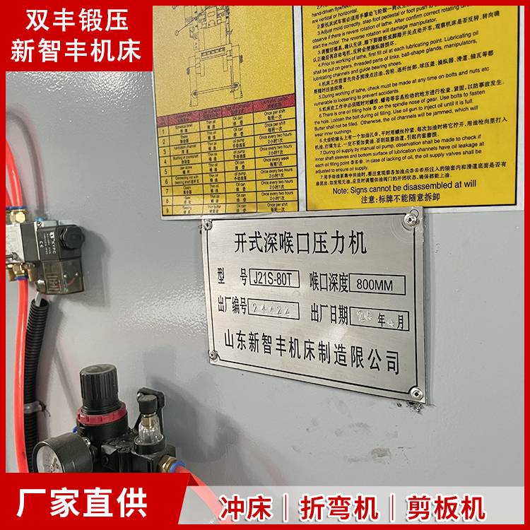 双丰锻压80T深喉冲压机 淄 博立式金属加工固定台冲床 J21S系列直发