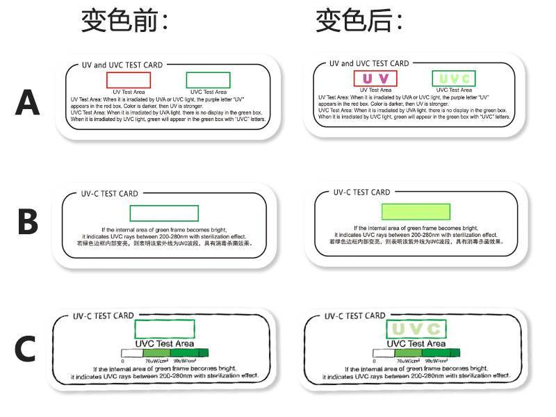 现货UV检测卡紫外线杀菌灯管uvc测试卡消毒杀菌测试紫光灯变色