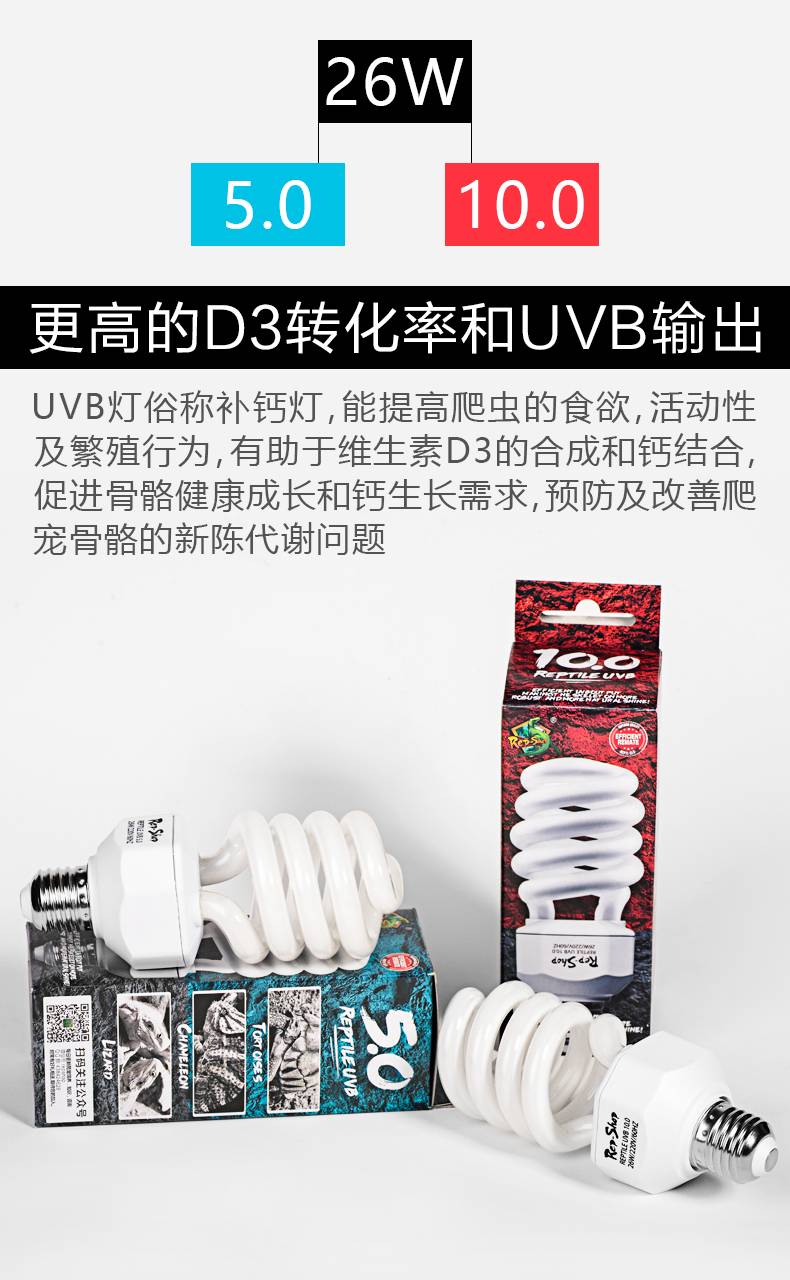 爬虫爬宠UVB灯紫外线灯10.0陆龟饲养箱蜥蜴补钙灯5.0乌龟晒背灯