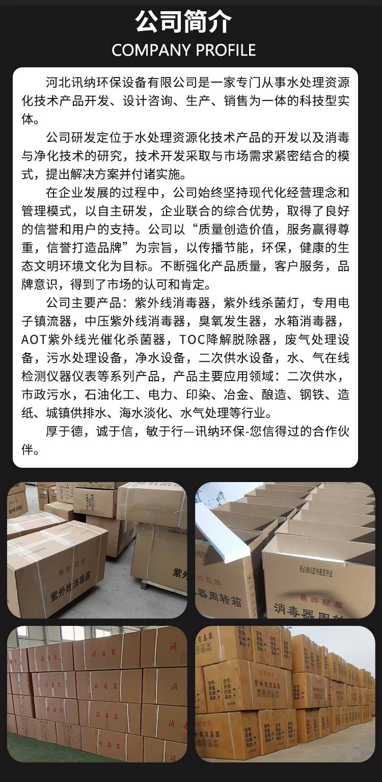 讯纳 浸没式紫外线灯 水体杀菌消毒除藻袪味净化水质设备生产厂家