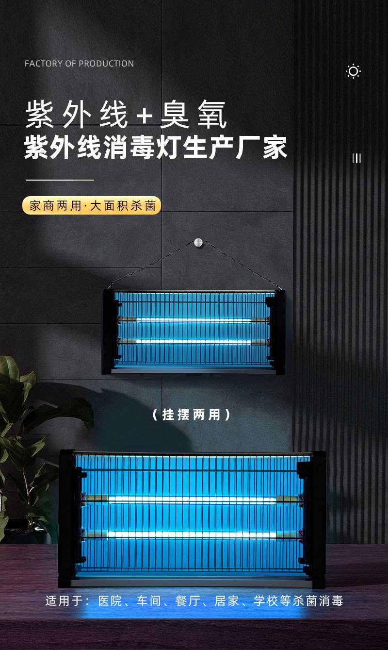 紫外线消毒灯餐厅饭店用杀菌灯家用悬挂式紫外灯空气净化紫外线灯