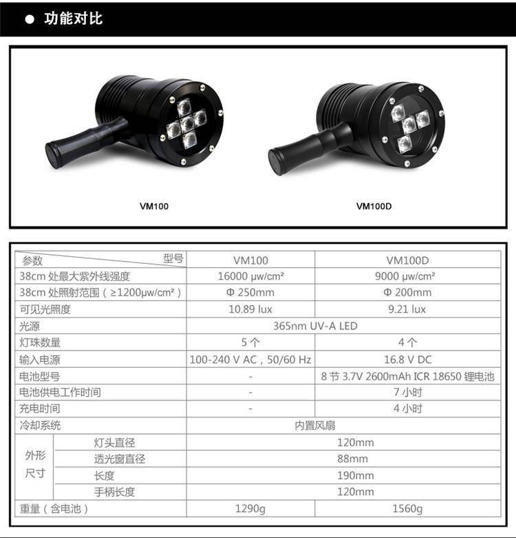 VM100D手持式LED紫外线灯 进口灯珠便携式黑光灯 紫外线探伤灯