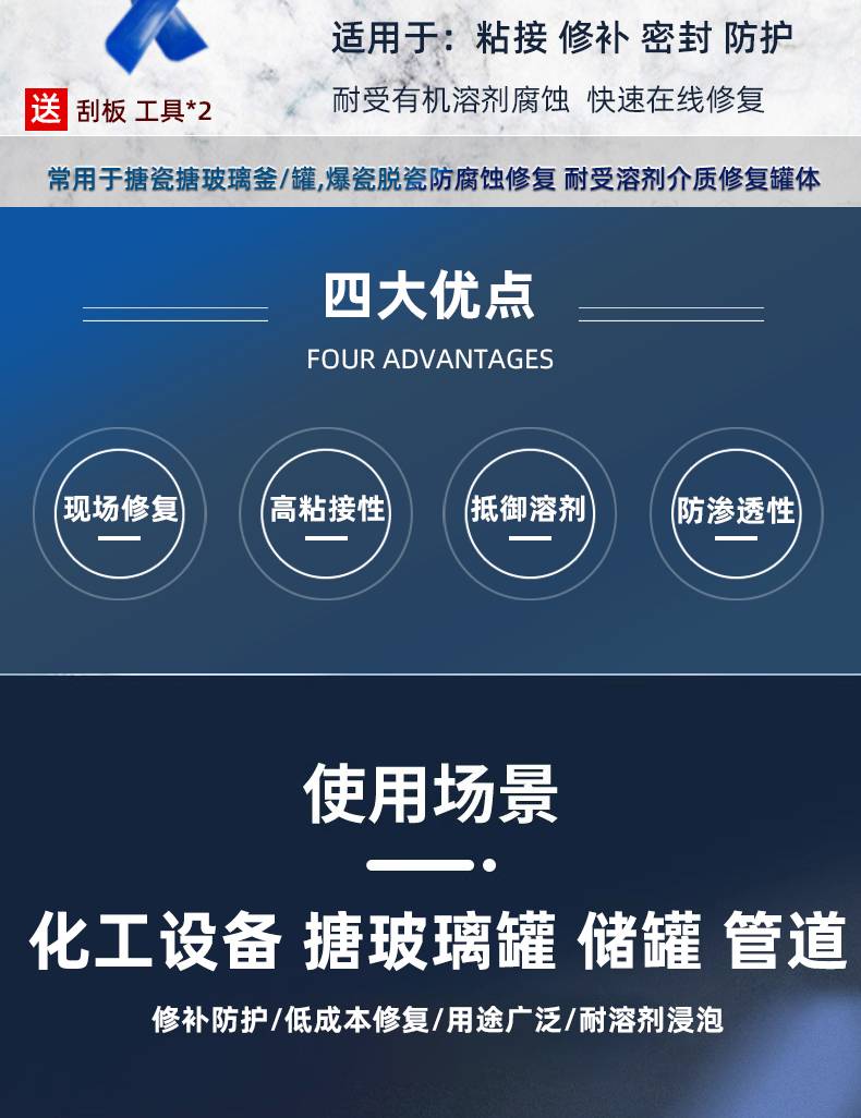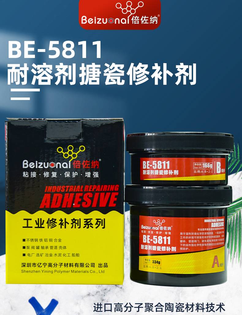 BE5811耐溶剂反应釜修补剂搪玻璃锅储酸罐耐二氯甲烷酒精修复胶水