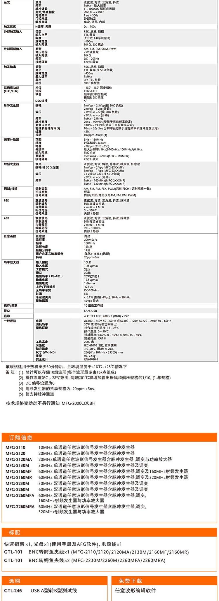 固纬信号发生器MFG-2110 MFG-2120 MFG-2120MA MFG-2130M MFG-2160MF