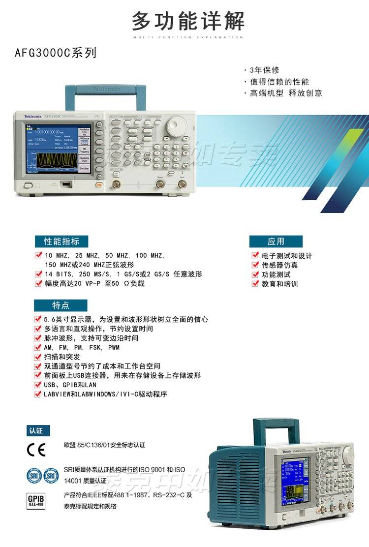 Tektronix泰克 任意函数信号发生器AFG3052C 2通道 50MHz原装现货