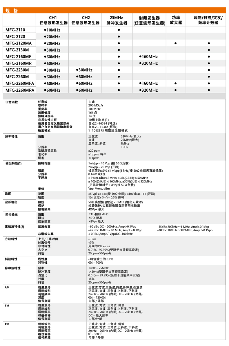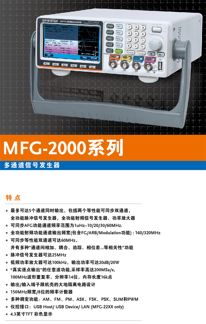 固纬MFG-2160MR任意波形信号发生器160/320MHz操作简单测量精准