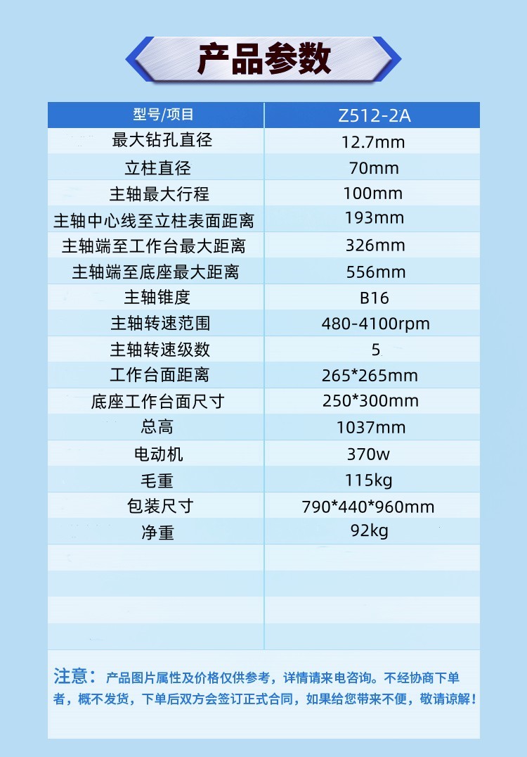 台钻Z512-2A低噪音高刚性工业高精密大功率钻床售后无忧