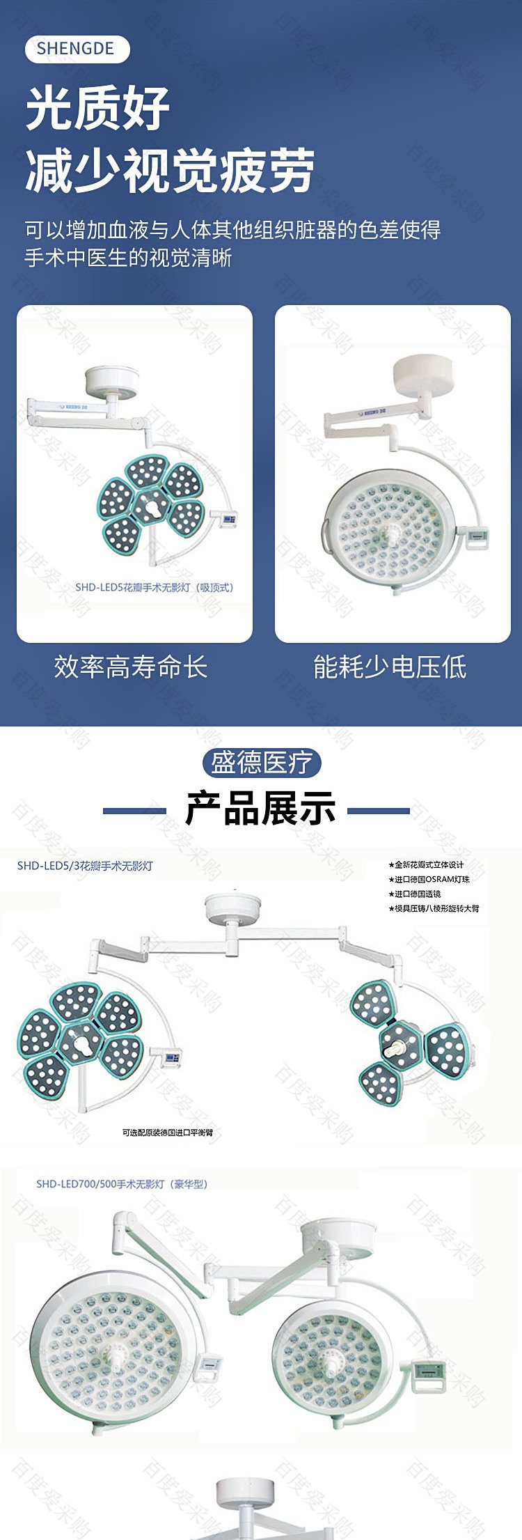 无影灯医用灯 使用寿命长 吸顶 壁挂式 资质齐全 盛德医疗