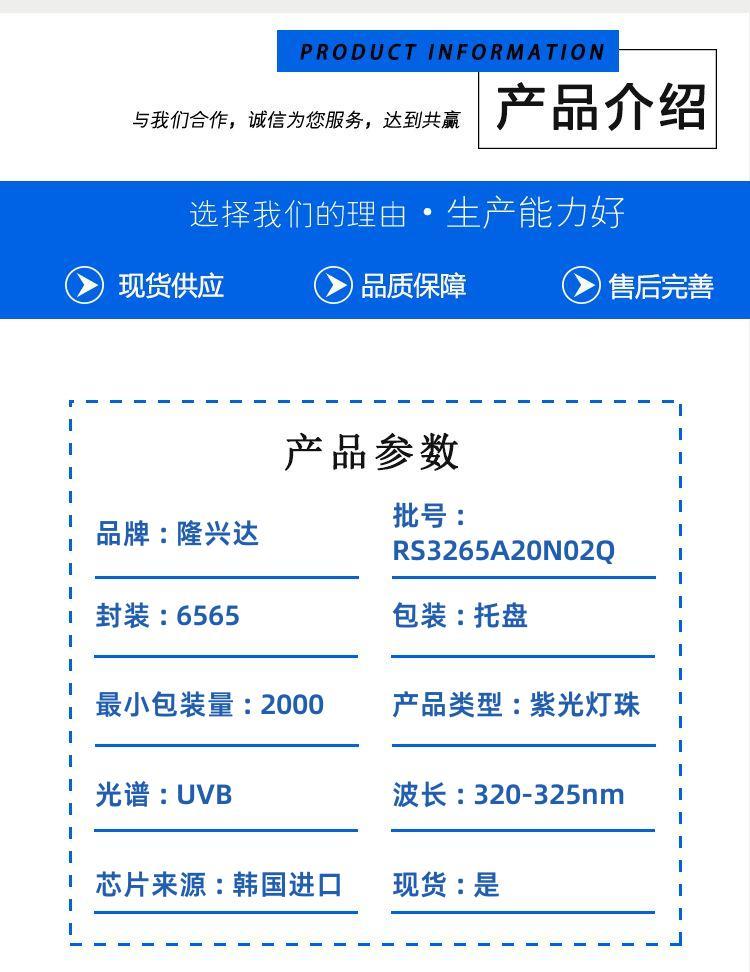 隆兴达科技有限公司提供3535、4545等多种封装规格,覆盖3mW-90mW全功率范围,发光角度可选60°、120°等,适配不同产品设计需求,安装灵活便捷;全系列产品通过ROHS、美国FDA等权威认证,每一颗灯珠均经过严格的性能测试,确保波长稳定、无色差、光电转换效率高,品质更可靠。