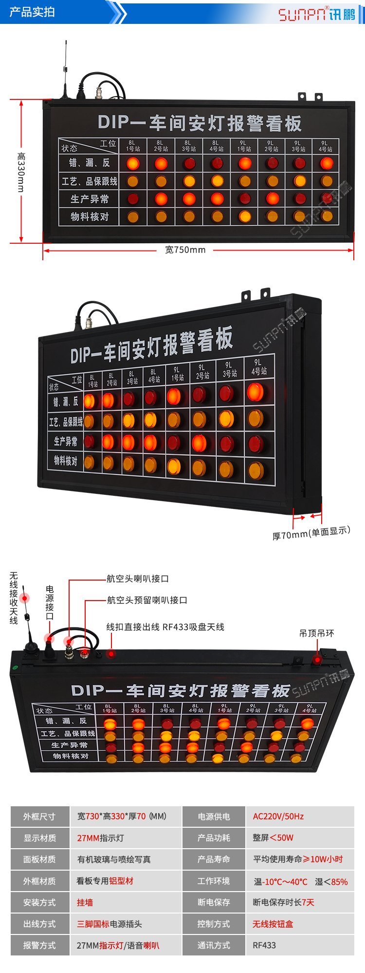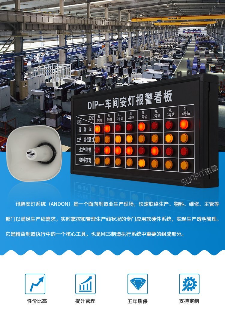 医疗设备车间呼叫andon系统安灯看板报警汇总显示屏工位异常呼叫