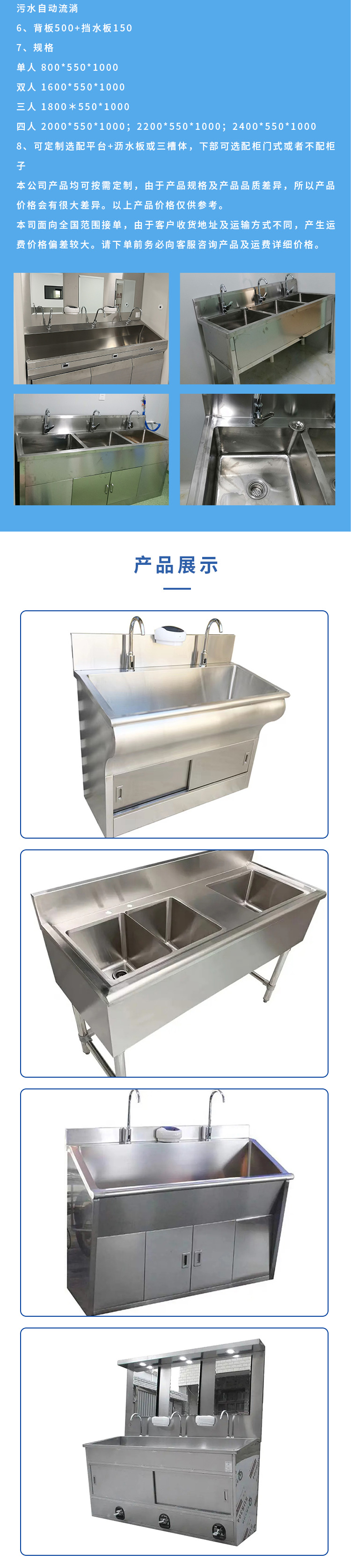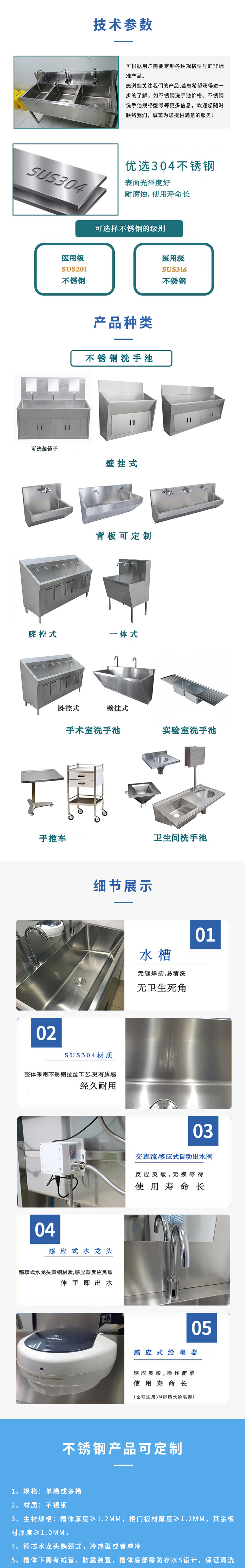 不锈钢洗手池 定制感应水龙头 洁净室水池 洗手槽坚固稳定