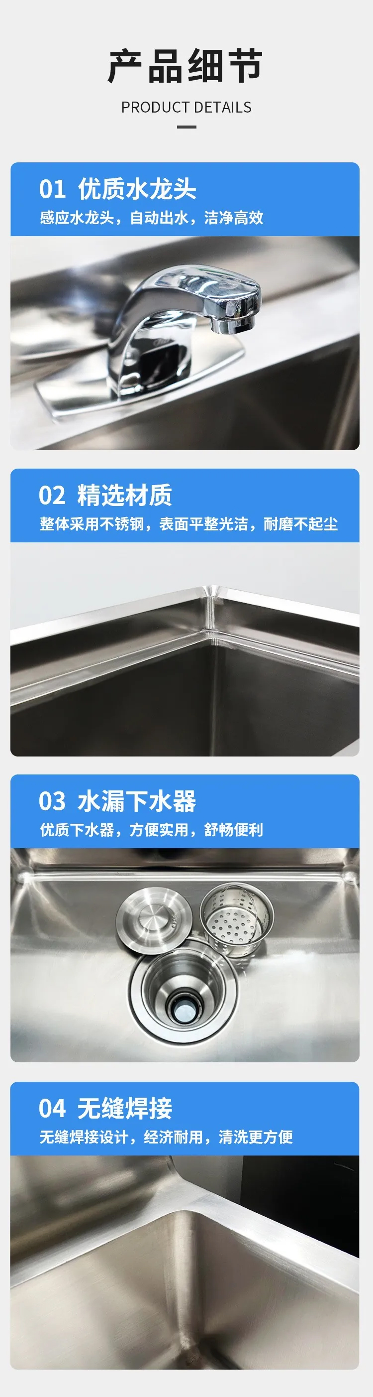 不锈钢洗手台洁净间更衣室洗手池水槽柜式组合 手动感应水龙头