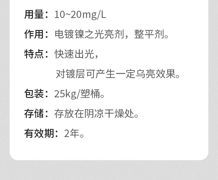 PAE 电镀镍光亮剂整平剂中间体 丙炔醇醚衍生物 快出光 镀层乌亮效果