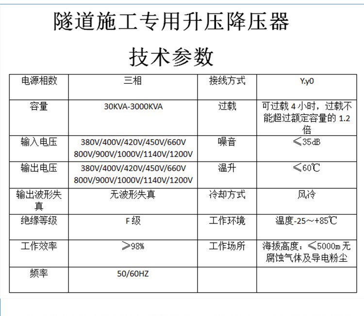 F级绝缘等级升降压器 隧道施工电压不够450V1200V升压设备