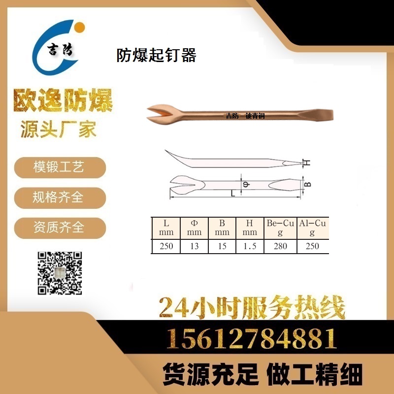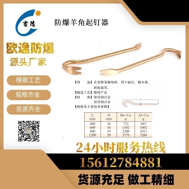 欧逸供应 防爆羊角起钉器 400 1200mm 铜锤680g 六棱尖撬棍 种类齐全