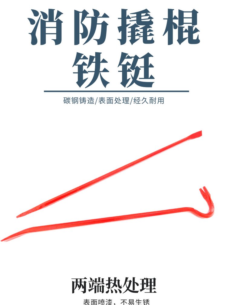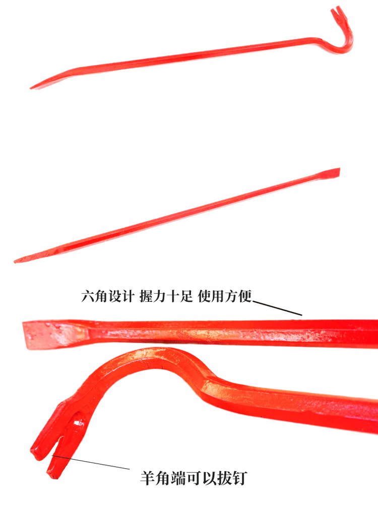 消防撬棍铁铤碳钢杠棒红色起钉器消防器材破拆多功能特种钢撬杠具
