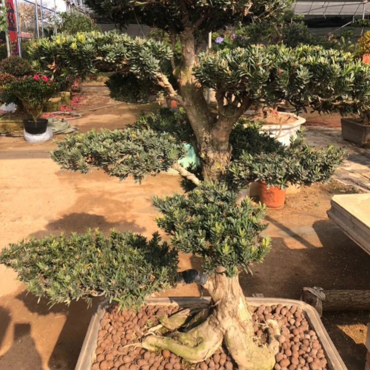 基地出售精品造型罗汉松 景区园林公园绿化种植别墅区点缀