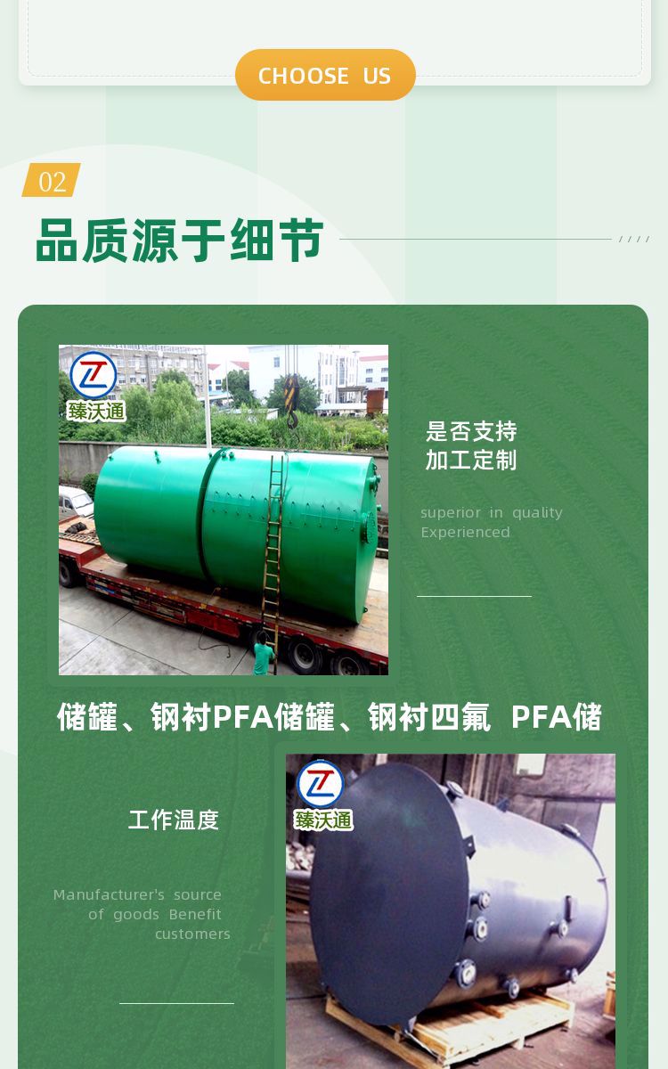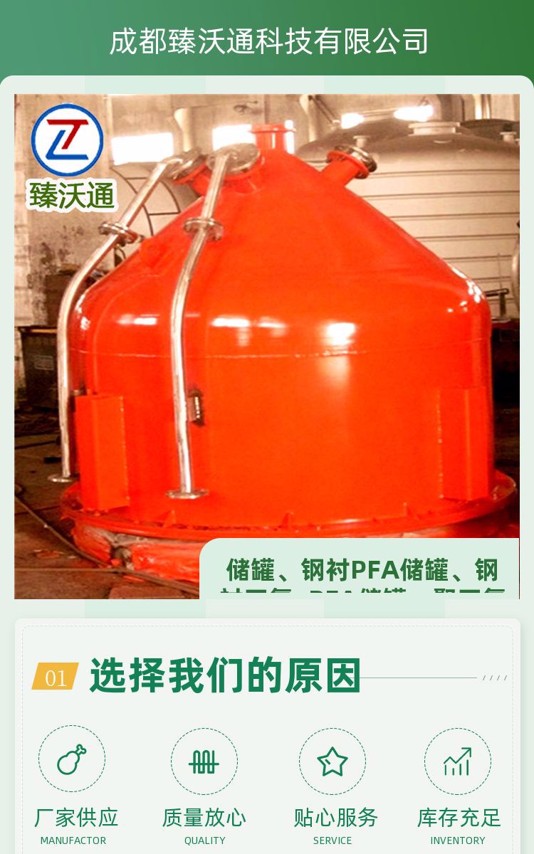 臻沃通立式PFA储 罐酸碱醇类液体存储 规格多样现货销售
