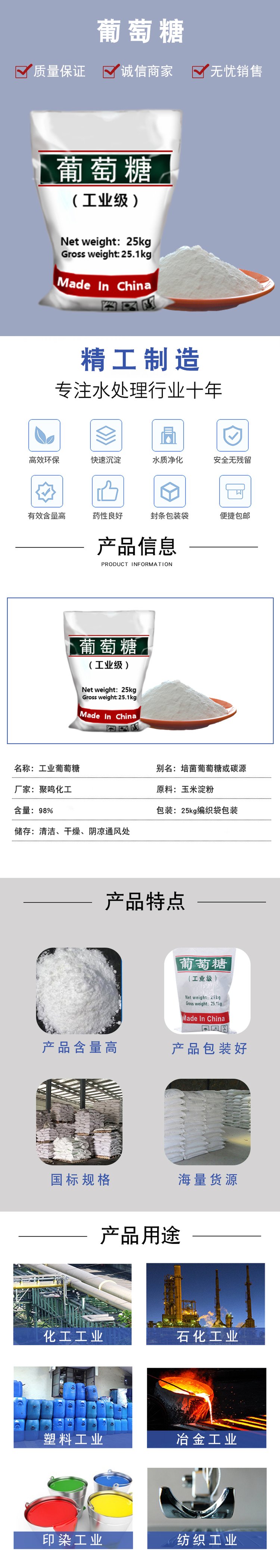 工业葡萄糖 醇类补充碳源 培养菌种 污水处理用 白色精细粉末