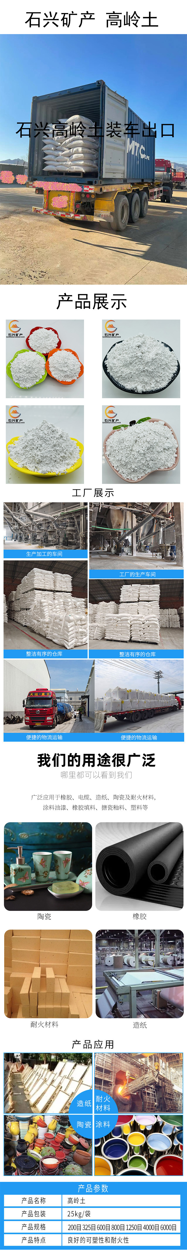 化妆品级面膜高岭土 水泥矿物掺合混凝土外加剂陶土 外墙防水腻子粉