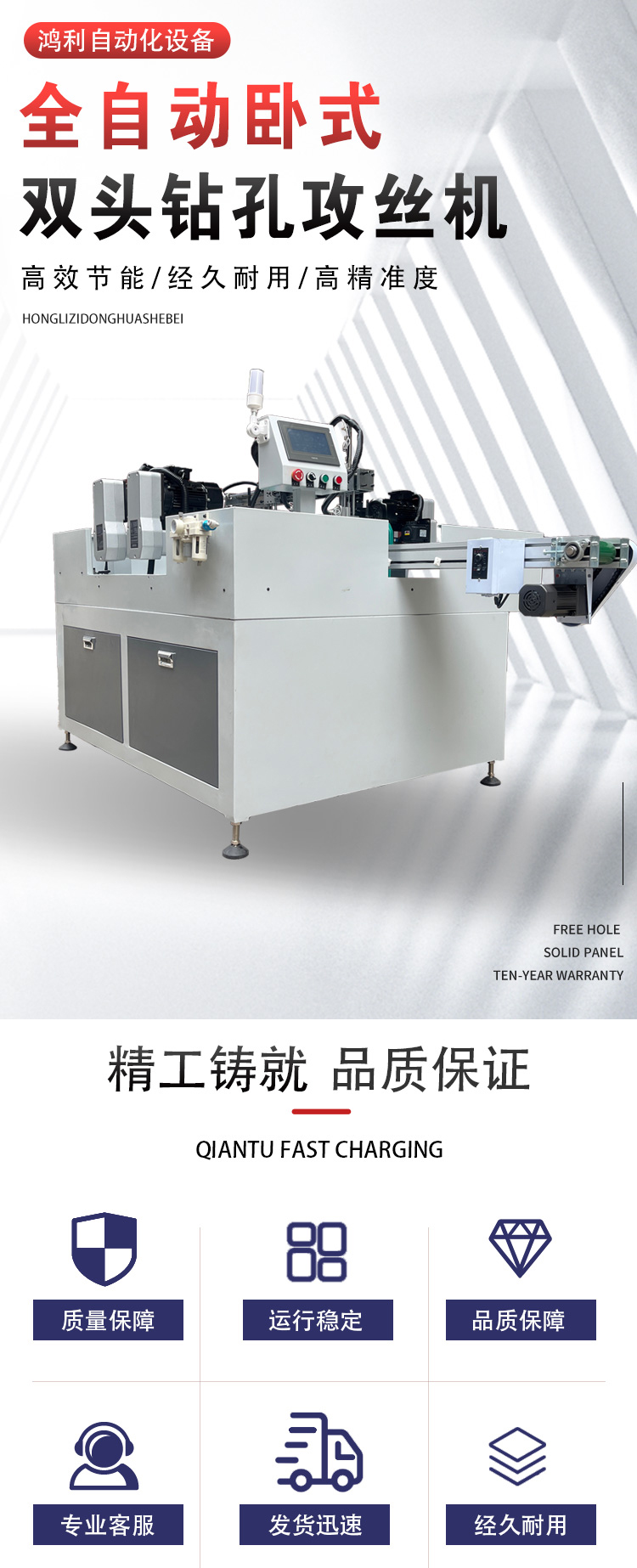 全自动卧式双头钻孔攻丝机 操作简单 范围广泛 生产厂家 鸿利自动化