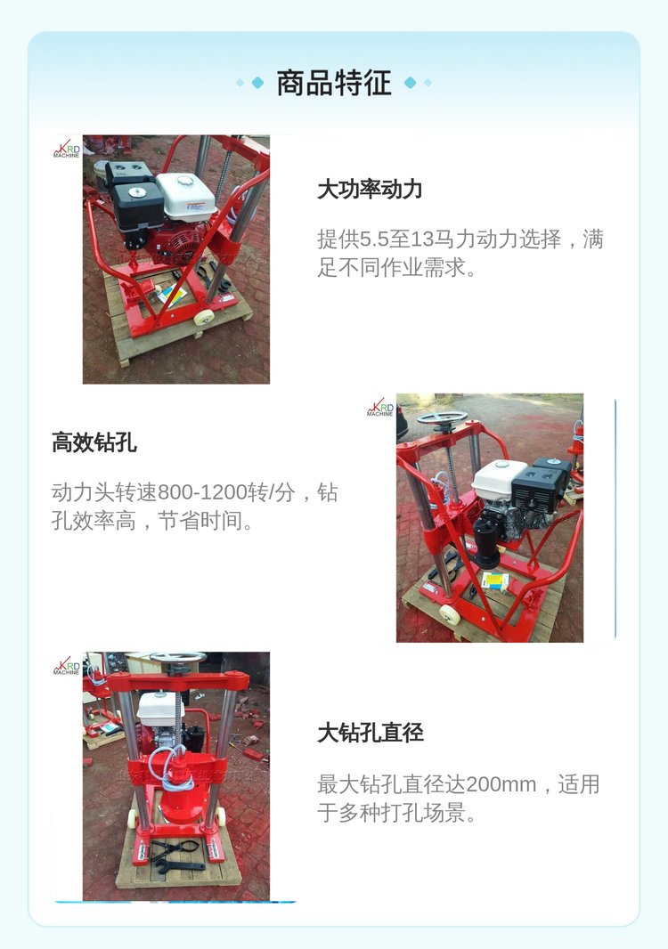 科锐德混凝土钻孔取芯机 200mm路面打孔机 13马力