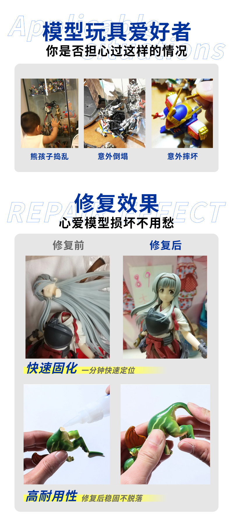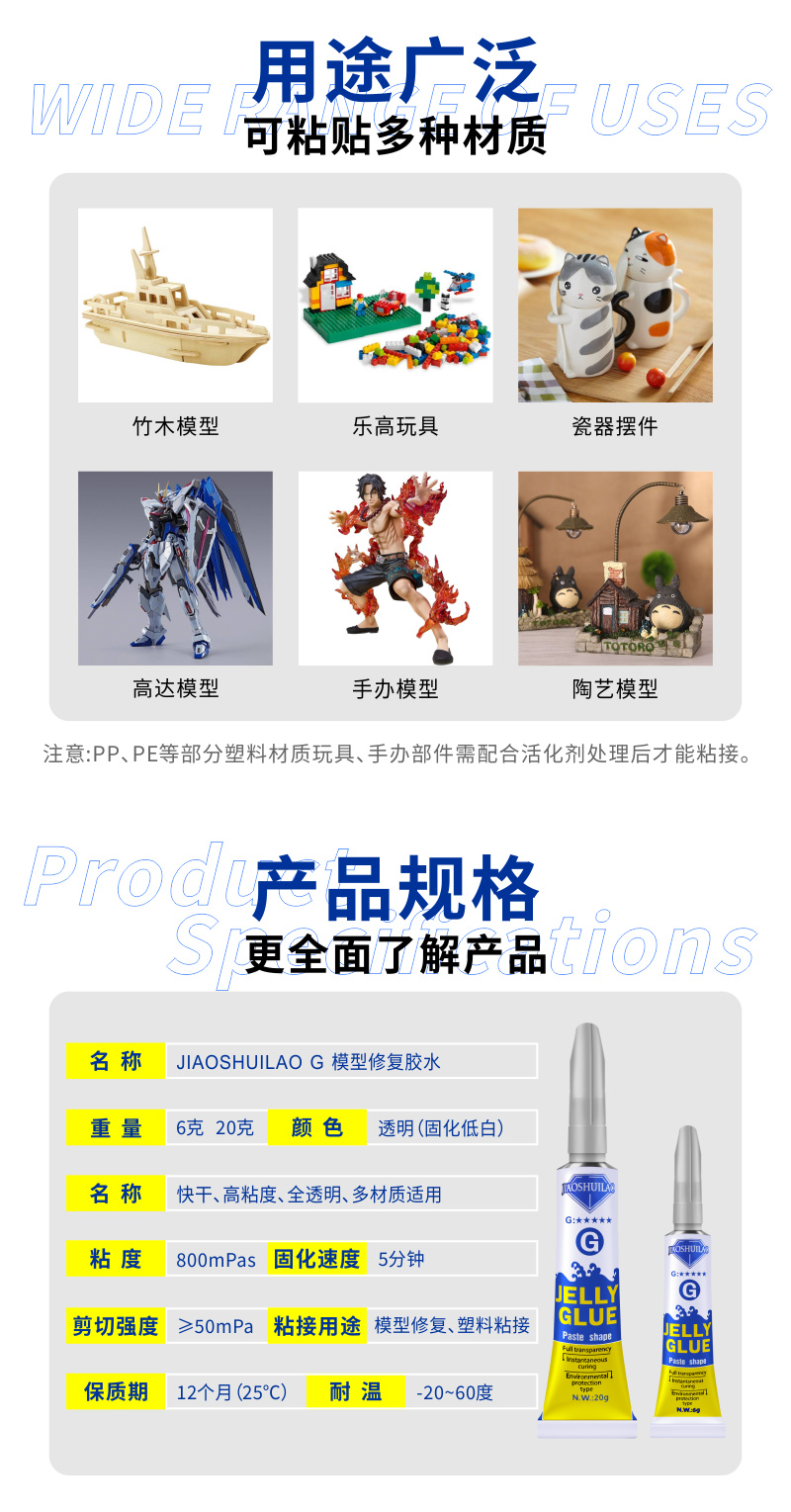 粘手办专用强力胶水制作修补修复高达乐高积木硬pvc塑料树脂abs玩具固定速干断头diy材料胶粘合剂手工模型胶
