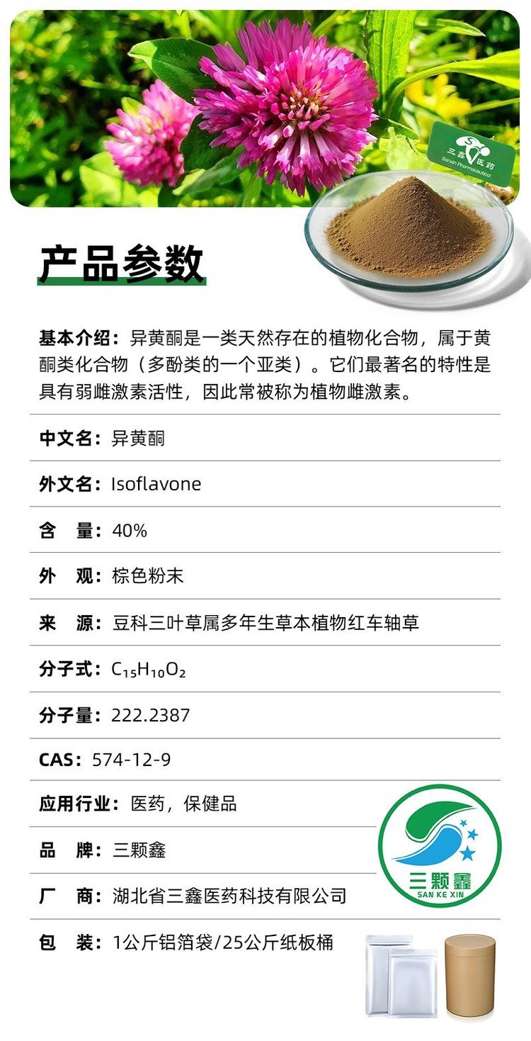 异黄酮40% 20% 8%红三叶提取物Isoflavone酚类异黄酮素574-12-9