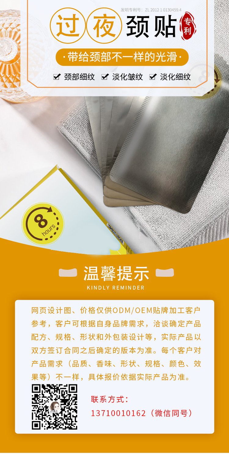 凝胶颈膜贴 颈贴 脖子纹 滋润补水保湿 护理颈部肌肤 OEM贴牌定制