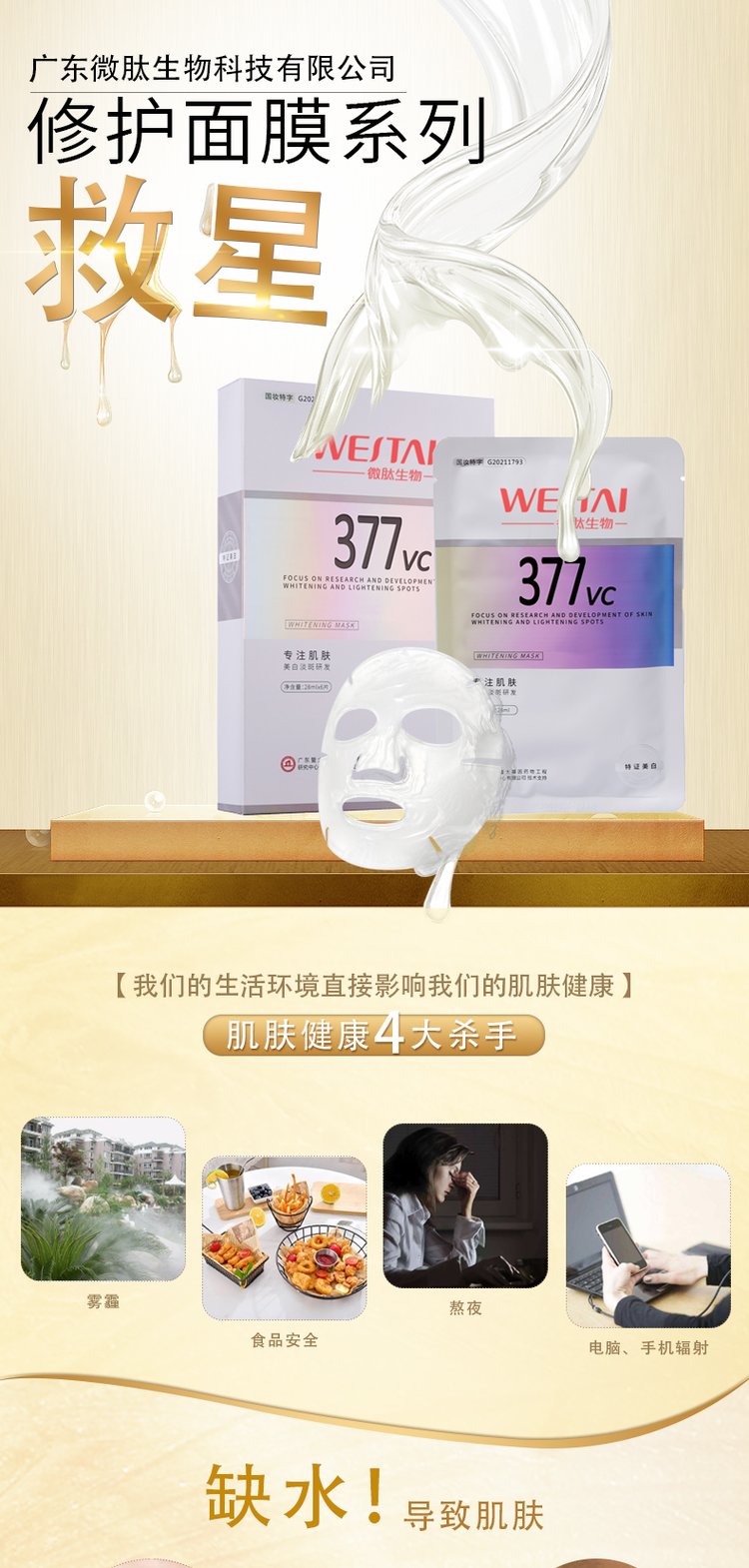 微肽多效高效修护面膜晒后多功能保湿补水面部护理