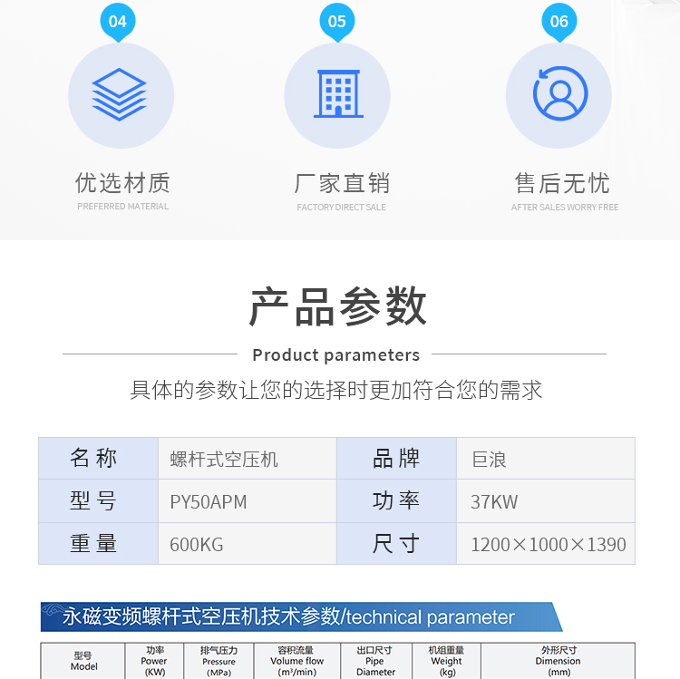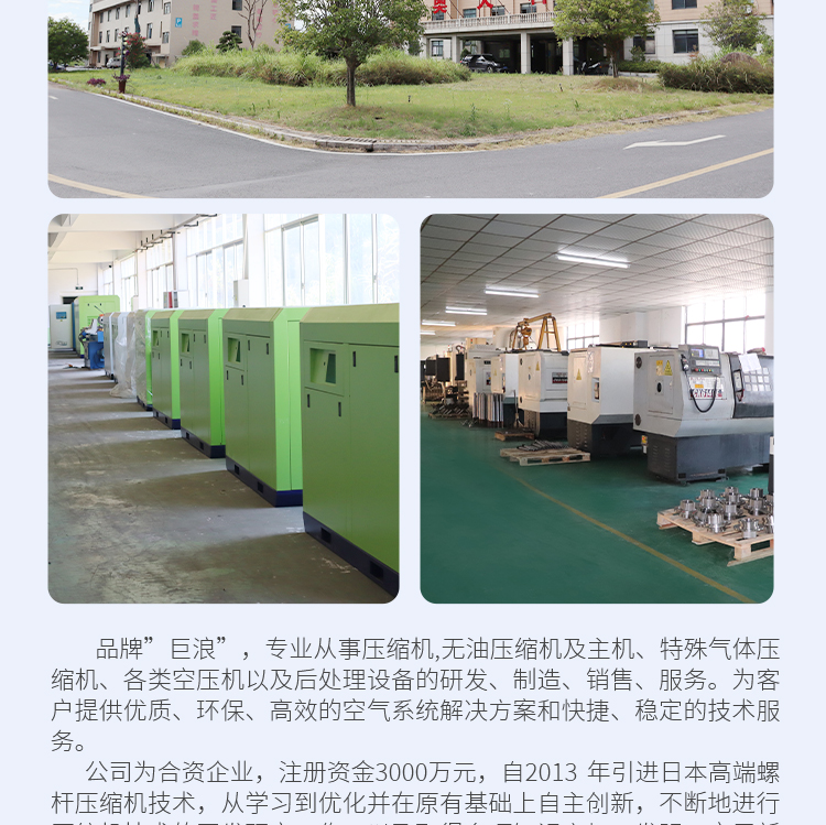 巨浪压缩机无油水润滑节能低噪低耗防爆电机螺杆式空压机