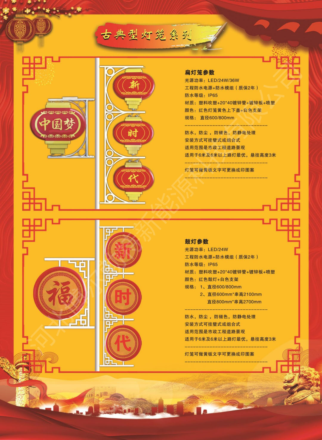 LED中国结广告灯箱市政道路照明景观灯三连串太阳能灯笼厂家批发