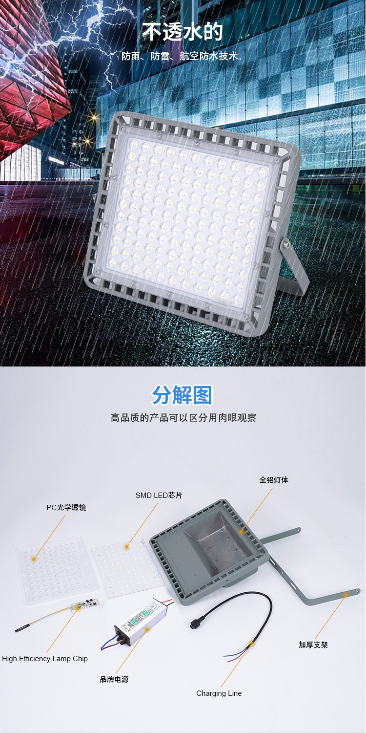 led投光、泛光工作灯 广告射灯户外防水工地厂房隧道照明投光灯