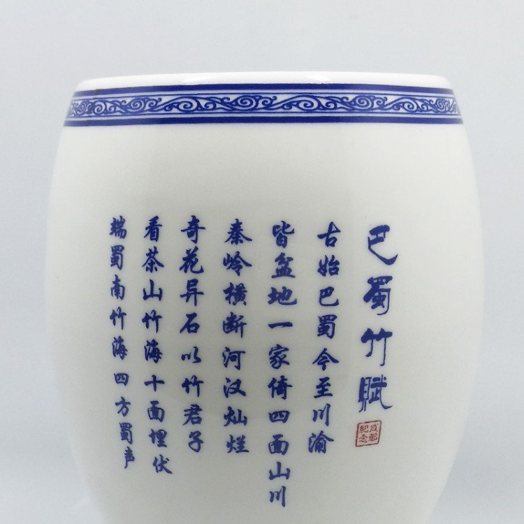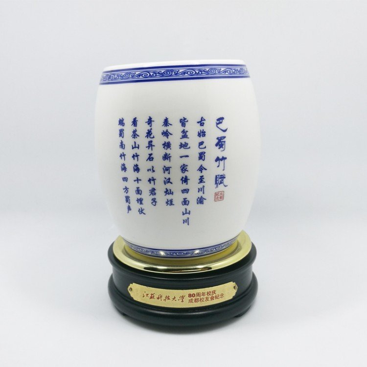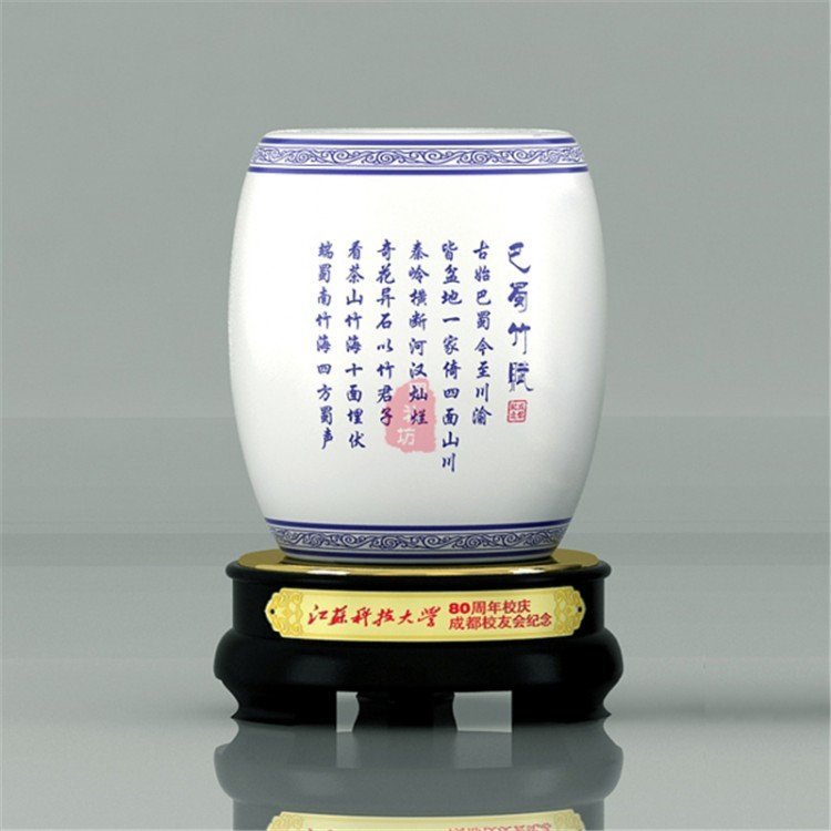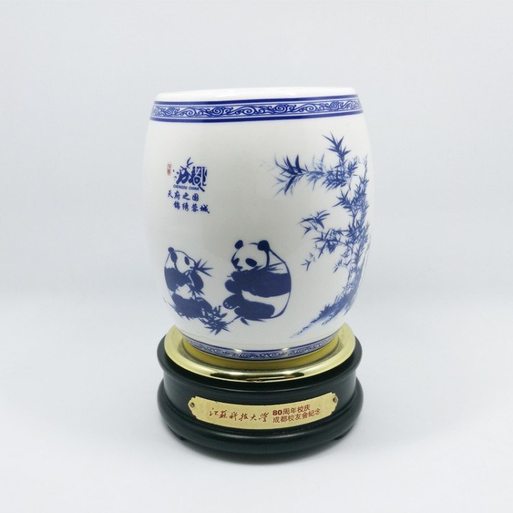 四川特色纪念礼品笔筒 陶瓷笔筒定做